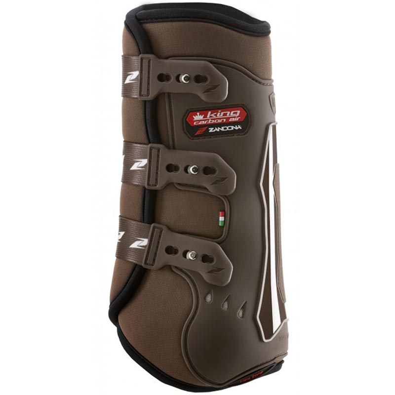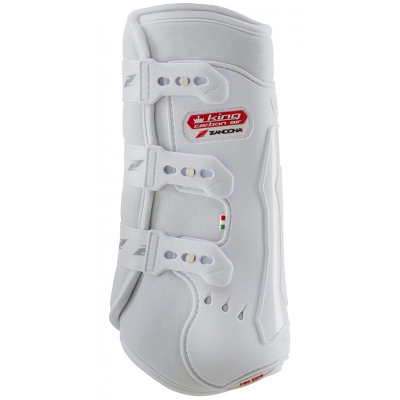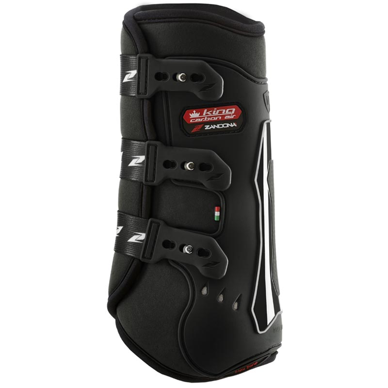 Tendon boots Zandonà DRESSAGE model KING Carbon Air Rear. Externally made of TPU, with differentiated thickness, support in perforated neoprene and equipped with 6 ventilation outlets on the fetlock. Gel-Tech membrane to absorb shock and cushion for comfort. In the outer zone of the pastoral, there is an area specially designed for flexibility (Flex Zone), the size and shape have been specifically designed to be more ergonomic as possible. Shell with Carbon fiber elements, for thermally insulate the joints from the heat generated by friction, and to increase the mechanical resistance to impacts. Closing elastic straps with quick-release tip, suitable for a secure closure. Certificate Ricotest. Product completely realized in Italy. Price is intended for the pair.