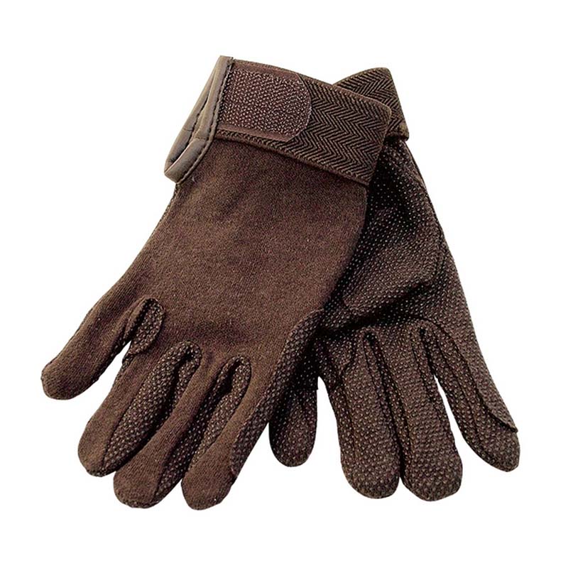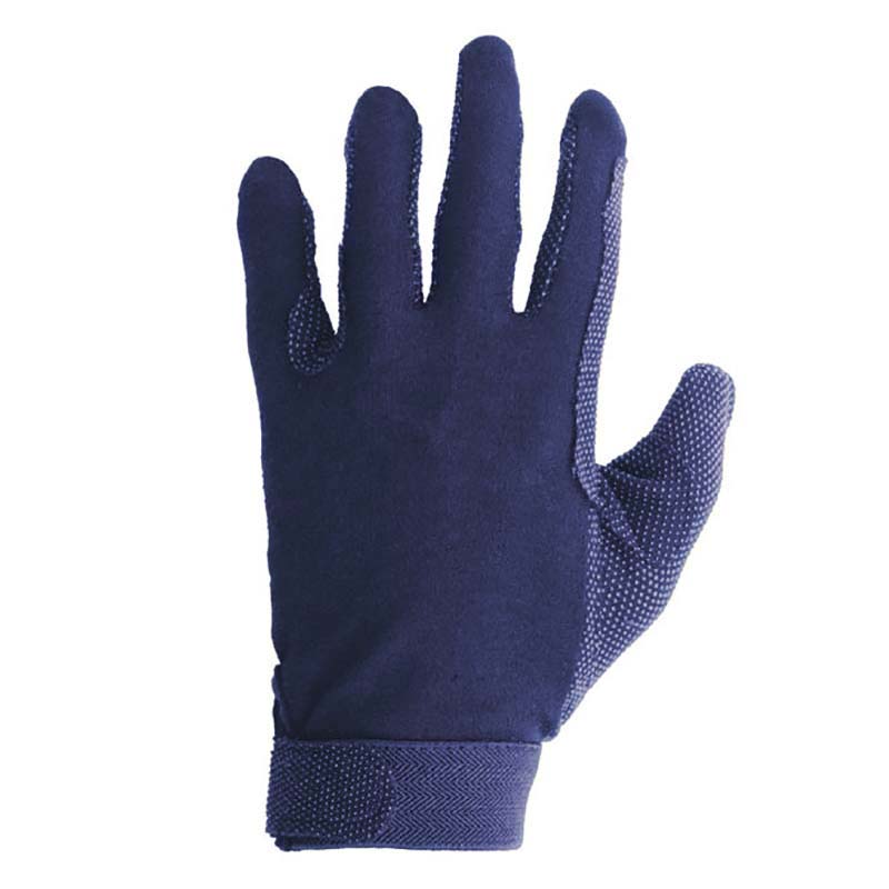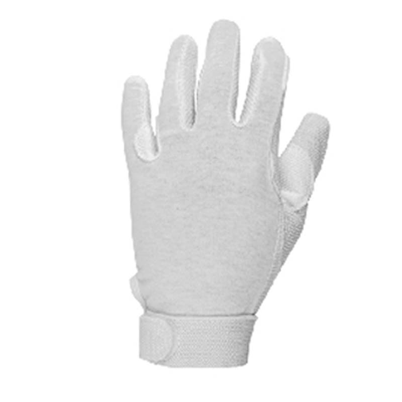 Cotton gloves with supports and nonslip rubber on palms with velcro closure.