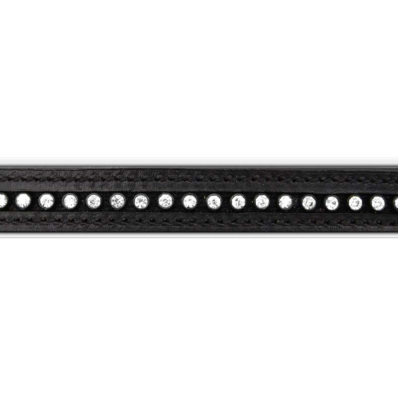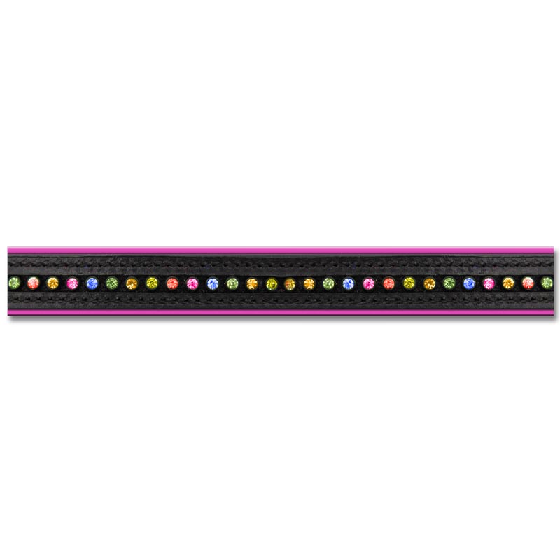 English bridle Star Diamond with rhinestone, various colors. Bridle complete in leather, with front straight and colored rhinestones, coated noseband and bezel, nickel buckles, reins 19mm canvas.
