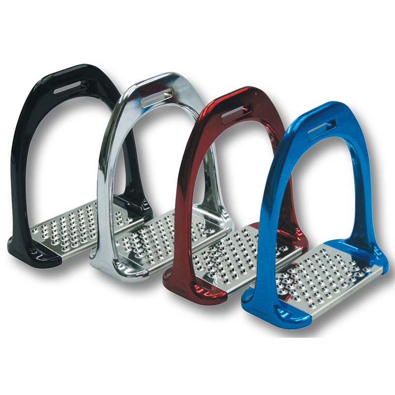 Pair of stirrups in coloured aluminium, Pro-Light model featuring a deep base and anti-slip step. Step width 12 cm. Weight about 400 gr. each