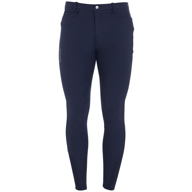 Men's Equestro trousers, stretch fabric, model Zefiro. Model slim fitting, anatomical shape, breathable cotton (95% cotton, 5% elasthane). Two front pockets, reinforced knees, belt loops, ankle with Lycra insert to improve grip and comfort for the rider. This item cannot be returned, i.e. it cannot be exchanged, replaced or refunded.
