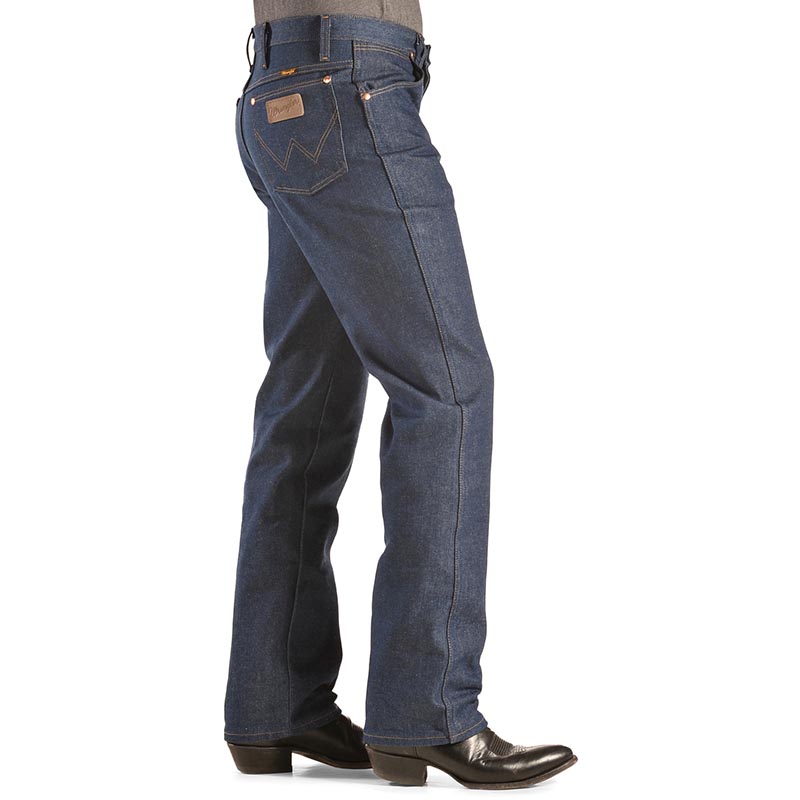 Hard indestructible fabric, slim fit, high waist, straight boot cut leg. These jeans are preferred by rodeo cowboys.