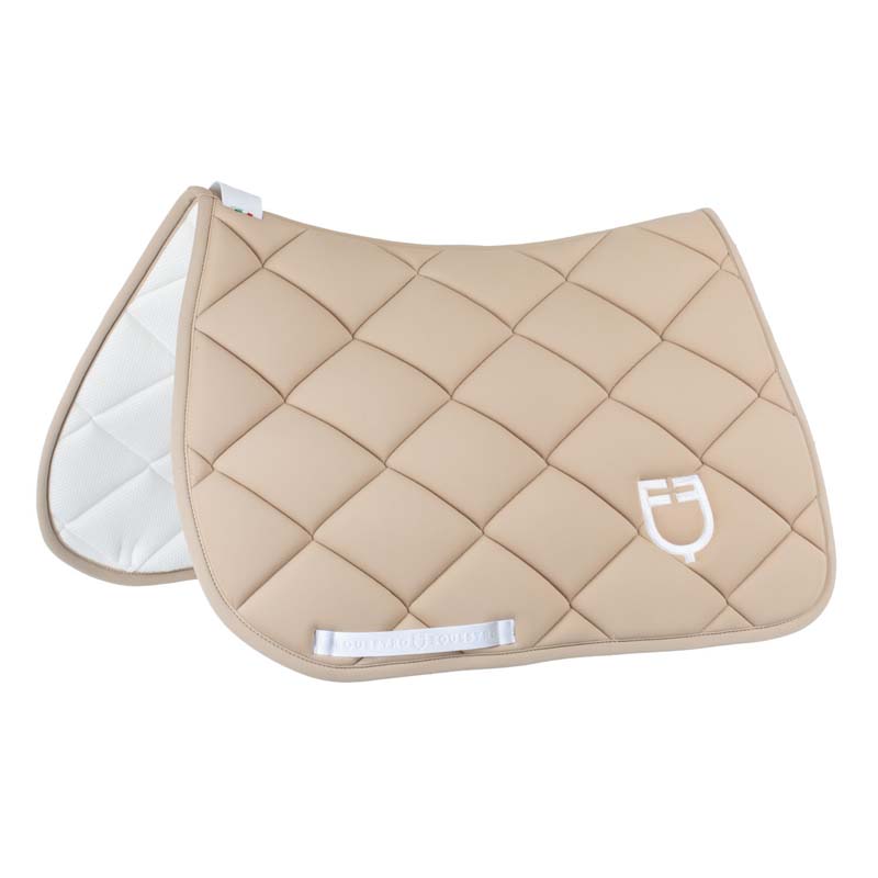 The Equestro GP English saddle pad in padded technical fabric offers comfort, stability and breathability. The honeycomb inner lining enhances sweat evaporation, keeping the horse’s back cool and dry. Available in various colors with contrasting embroidery (white or black).