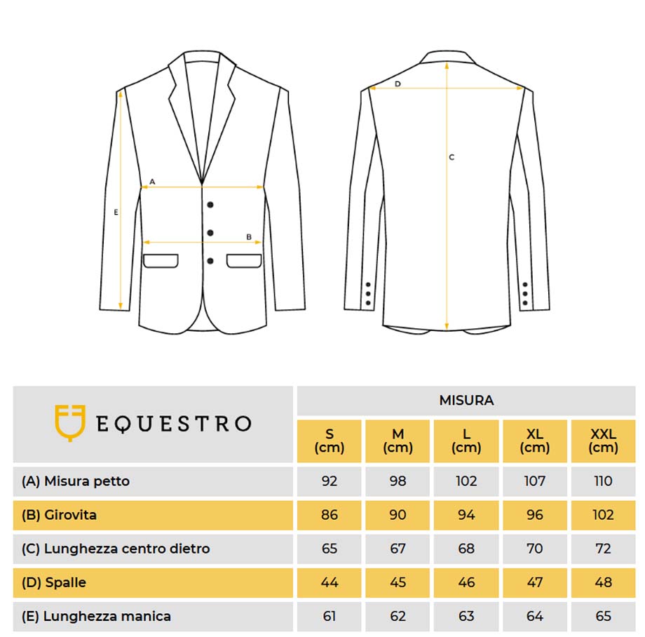 The Equestro Girasol men’s competition jacket is made from stretch, breathable technical fabric, ensuring comfort even on warmer days. It features a classic design with a three-button front closure, side pockets and buttoned cuffs.